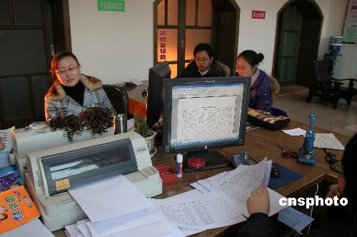 12月29日,山西陽城縣民政局婚姻登記所工作人員在為準備新年結婚的青年登記忙碌。據(jù)陽城縣婚姻登記所工作人員介紹,2007年12月份結婚登記的青年不少,最多時一天有27對青年登記。中新社發(fā) 馬宏泰 攝