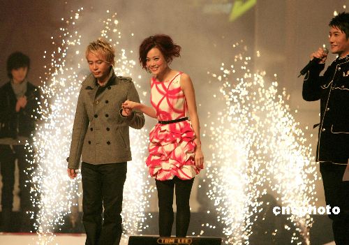 圖為李克勤、容祖兒攜手出席頒獎(jiǎng)禮。