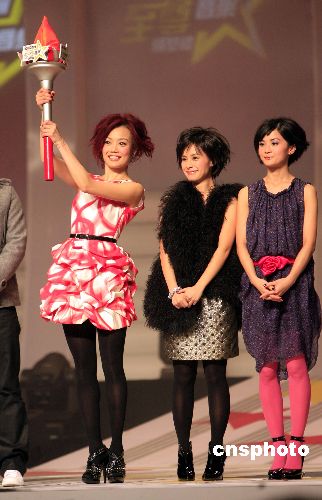 香港樂壇三日晚在會議展覽中心展覽館舉辦盛大Road Show至尊音樂頒獎(jiǎng)活動(dòng),香港幾乎所有大小音樂明星都到場出席。中新社發(fā) 王麗南 攝