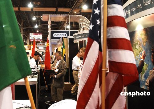 中美合資企業(yè)在展場(chǎng)插起兩國(guó)國(guó)旗
