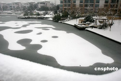圖:南京花神湖出現(xiàn)冰上雪