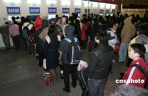 2008年1月29日,受南方惡劣天氣影響,北京西站暫時(shí)停售了京廣線株洲以南列車的車票,如旅客選擇放棄旅行,可以全額退票。北京西站已在北廣場121至130窗口,新開辟了10個(gè)退票窗口。中新社發(fā) 魯谷 攝