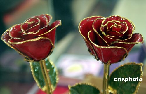 2008年2月13日,“情人節(jié)”前夕,遼寧省沈陽市中街一商廈售價521元的金玫瑰花面市。中新社發(fā) 劉寶成 攝