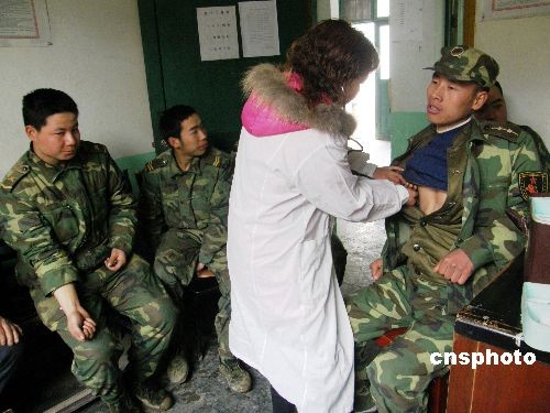 由于貴州受50年不遇的連續(xù)凝凍天氣的影響,輸電線路受到嚴重毀損,大部分地區(qū)停電停水,人民群眾的基本生活受到極大影響,工農業(yè)生產全面停止。災情發(fā)生后,成都軍區(qū)駐重慶某部,根據上級命令冒著嚴寒火速趕到受災比較嚴重的貴州黔南搶修農村電網,保證當地居民早日用上照明電。福泉市衛(wèi)生局獲悉后,積極組織醫(yī)務人員到抗災一線為抗凍救災部隊送醫(yī)送藥。中新社發(fā) 毛遠富 攝