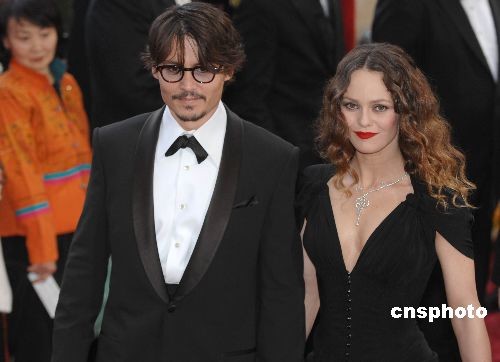 當(dāng)?shù)貢r(shí)間2月24日晚,第八十屆奧斯卡頒獎(jiǎng)典禮在好萊塢柯達(dá)劇場舉行。影帝提名人、《理發(fā)師陶德》主演約翰尼·德普未能如愿。圖為約翰尼·德普攜女友維尼莎·帕萊茲準(zhǔn)備出席頒獎(jiǎng)禮。中新社發(fā) 張煒 攝