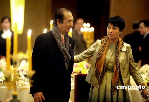 3月13日晚,全國政協(xié)常委何鴻燊夫婦在北京釣魚臺(tái)國賓館出席港澳委員招待會(huì)。當(dāng)晚,全國政協(xié)辦公廳、中共中央統(tǒng)戰(zhàn)部舉行招待會(huì),招待參加全國政協(xié)十一屆一次會(huì)議的港澳地區(qū)全國政協(xié)委員。中新社發(fā) 廖攀 攝