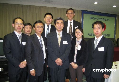 日本外務(wù)省新任新聞發(fā)言人兒玉和夫3月14日晚在東京與中國(guó)新華社、光明日?qǐng)?bào)等駐日記者交流時(shí)表示,日本外務(wù)省正在全力準(zhǔn)備迎接胡錦濤主席訪日。胡主席成功訪日,對(duì)于進(jìn)一步加強(qiáng)日中關(guān)系有著非常重要的意義。圖為兒玉和夫(前排中)和中國(guó)記者們合影。中新社發(fā) 段躍中 攝