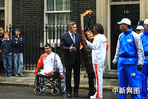 快訊:英國首相布朗在唐寧街歡迎北京奧運圣火(圖)