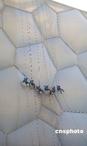 組圖:“蜘蛛俠”為水立方“洗臉”(3)