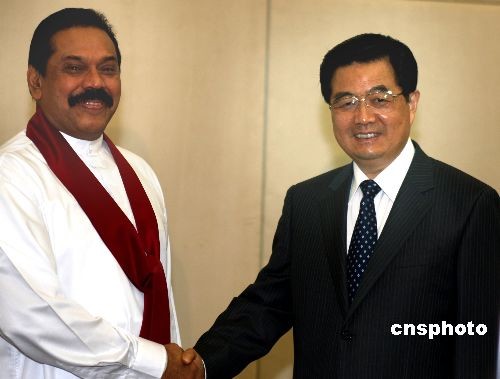 4月10日,中國國家主席胡錦濤在海南省三亞會見前來出席博鰲亞洲論壇2008年年會的斯里蘭卡總統(tǒng)拉賈帕克薩。中新社發(fā) 任晨鳴 攝