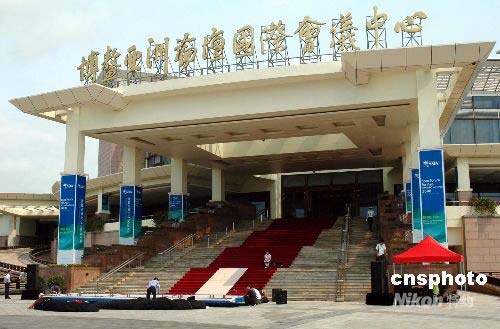 4月11日上午,工作人員在博鰲亞洲論壇國際會議中心布置會場。博鰲亞洲論壇2008年年會開幕式12日將在這里舉行,各項準備工作有條不紊。中新社發(fā) 尹海明 攝