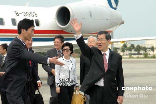 圖:蕭萬(wàn)長(zhǎng)飛抵海南參加博鰲亞洲論壇