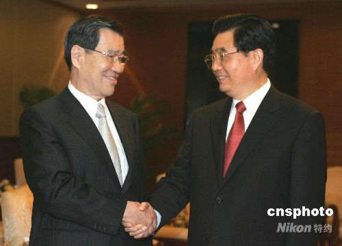圖:胡錦濤在博鰲會(huì)見蕭萬長(zhǎng)一行