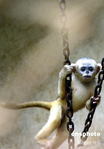 鄭州動物園的一只剛滿月的猴仔“美美”同游客見面,由于今年是奧運年,工作人員稱之為“奧運猴寶寶”。 李志全 攝