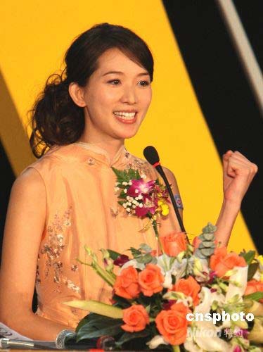 臺(tái)灣美女林志玲擔(dān)任主持人,現(xiàn)場(chǎng)為北京奧運(yùn)加油。作者: 趙振清