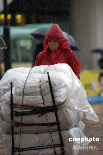 狂風(fēng)暴雨給市民外出帶來(lái)很大不便。中新社發(fā) 譚達(dá)明 攝