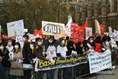 當?shù)貢r間19日,在英國學習、工作和定居的華人約2000多人在倫敦舉行靜默集會,抗議包括英國廣播公司(BBC)在內(nèi)的西方媒體對中國所做的不公正的、片面的報道。圖為在英國議會大廈對面舉行的靜默集會現(xiàn)場。中新社發(fā) 李鵬 攝