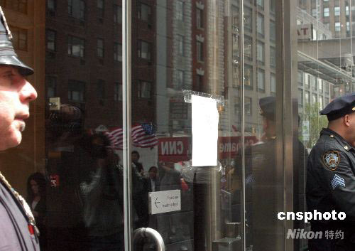 數(shù)百名華人及留學(xué)生二十一日在美國有限電視新聞網(wǎng)(CNN)駐紐約辦公樓附近游行,抗議CNN辱華報道,并將抗議書貼在CNN門前。中新社發(fā) 李靜 攝