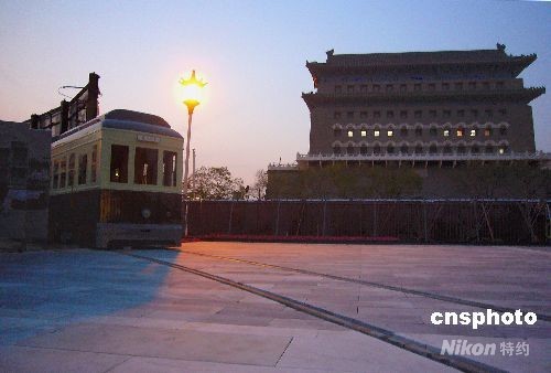 圖:“鐺鐺車”重現(xiàn)北京前門大街