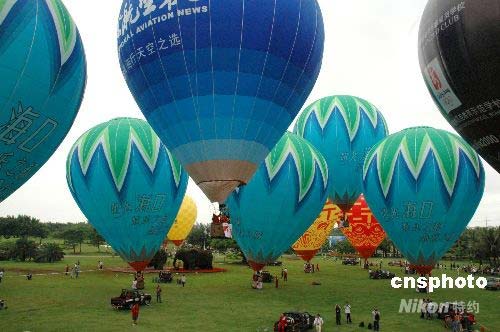 圖:海口市民爭乘熱氣球體驗(yàn)升空感受