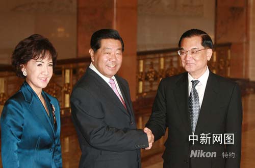 4月28日,中共中央政治局常委、全國政協(xié)主席賈慶林在北京人民大會堂會見國民黨榮譽主席連戰(zhàn)。廖文靜 攝