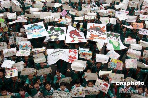 圖:山東棗莊千余名小學(xué)生同繪“慶奧圖”(2)