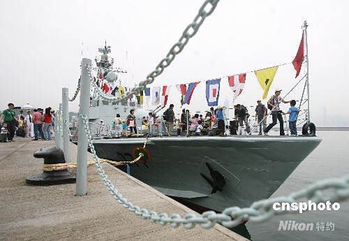 圖為市民在昂船洲軍營(yíng)參觀艦艇。中新社發(fā) 武仲林 攝