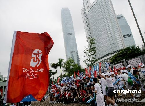 五月二日,北京2008奧運圣火在中國國內(nèi)首站香港傳遞,香港市民揮舞紅旗高喊“中國加油”。