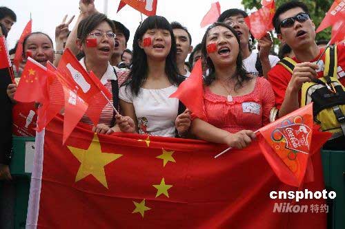圖為澳門市民激情迎接奧運圣火。中新社發(fā) 武仲林 攝