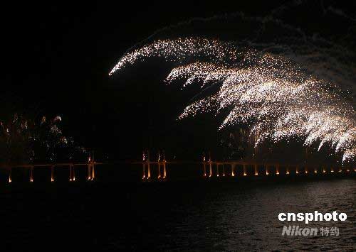 圖:澳門舉行煙花匯演慶祝奧運(yùn)火炬?zhèn)鬟f