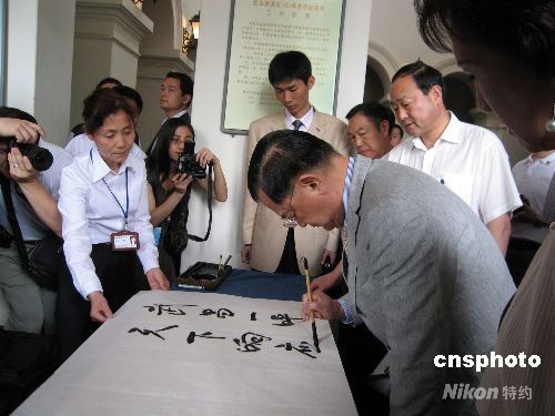 圖為連戰(zhàn)為該館題詞:武昌一呼,天下響應(yīng),英靈清輝,光照寰宇。中新社發(fā) 艾啟平 攝