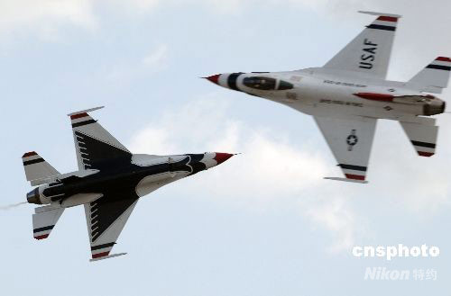 美國(guó)“雷鳥”飛行隊(duì)特技表演驚心動(dòng)魄(2)