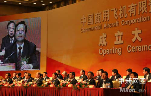 5月11日,國(guó)家控股的大型客機(jī)公司——中國(guó)商用飛機(jī)有限責(zé)任公司(簡(jiǎn)稱中國(guó)商飛公司)在上海舉行成立大會(huì)并正式揭牌,新公司將全力打造安全、經(jīng)濟(jì)、舒適、環(huán)保的大型客機(jī),旨在讓中國(guó)的大型客機(jī)早日飛上藍(lán)天。孫自法 攝