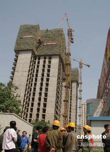 西安感覺強烈震感,一個正在施工的建筑工地吊塔在高空被震斷,操作員當(dāng)場摔下身負(fù)重傷,其他建筑工人被緊急疏散。目前傷員正在醫(yī)院搶救,尚未脫離生命危險。中新社發(fā) 王振001 攝