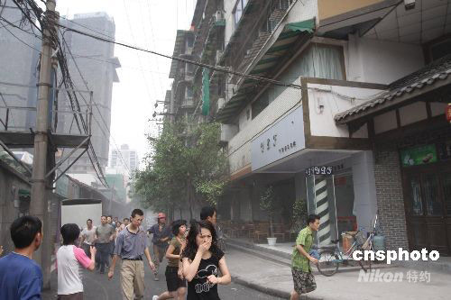 5月12日14時(shí)28分,在四川汶川縣(北緯31度,東經(jīng)103.4度)發(fā)生7.8級(jí)地震,四川省會(huì)成都有強(qiáng)烈震感,市民緊急從建筑物中跑出來,在街道上緊急避險(xiǎn),全城交通因此受阻。 中新社發(fā) 鄒輝 攝