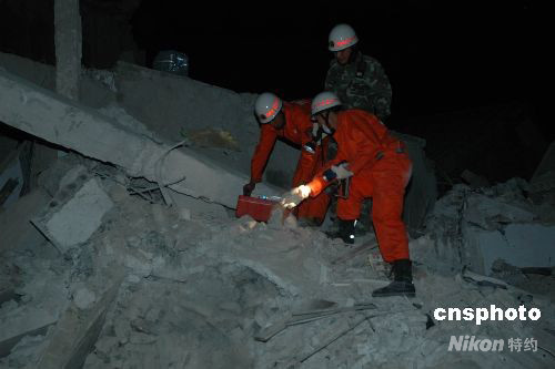 12日下午2:30左右,受四川汶川地震波及,重慶市梁平縣文化鎮(zhèn)一小學(xué)教學(xué)樓發(fā)生垮塌。13日凌晨1時(shí)許,記者從梁平縣政府辦公室獲悉,目前搜救工作已全部結(jié)束,垮塌造成5人死亡,36人受傷。圖為消防人員正利用生命探測(cè)器對(duì)廢墟下的傷員進(jìn)行探測(cè)。 中新社發(fā) 郭虹 攝