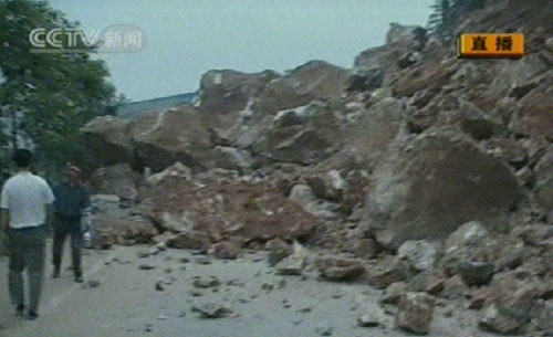 圖:綿陽市北川縣災情嚴重 公路擰成“麻花”(2)