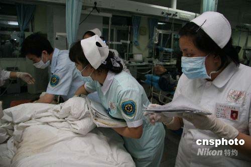 圖:醫(yī)務(wù)工作者救助來自都江堰地震傷員(5)