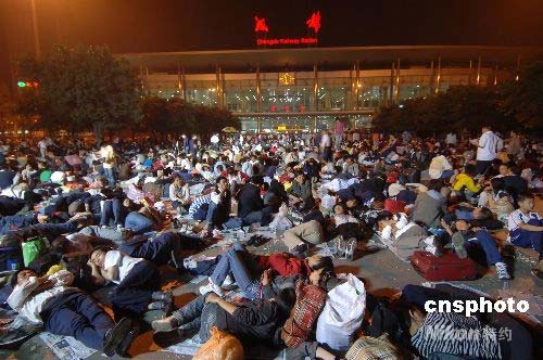 5月12日23點(diǎn)15分,成都站在地震后開出第一趟旅客列車(成都至昆明的2639次)。北京時(shí)間5月12日14時(shí)28分,在四川汶川縣(北緯31度,東經(jīng)103.4度)發(fā)生7.8級地震。成都鐵路局管轄范圍內(nèi)的四川、重慶、貴州等地都有明顯震感,特別是四川境內(nèi)更是反應(yīng)強(qiáng)烈。地震災(zāi)害發(fā)生后,成都鐵路局立即啟動旅客列車塌方斷道應(yīng)急預(yù)案,所有在途旅客列車均就地停車并采取防溜措施,指派工務(wù)部門勘查線路、橋梁、隧道,在確認(rèn)設(shè)備質(zhì)量可以確保行車安全后,開行貨車壓道,逐步放行客車。截止5月12日24時(shí),成都局管內(nèi)除寶成線外,其余各線基本恢復(fù)通車,晚點(diǎn)列車陸續(xù)開始移動,預(yù)計(jì)自13日起可逐步恢復(fù)運(yùn)行秩序。中新社發(fā) 曹寧 攝