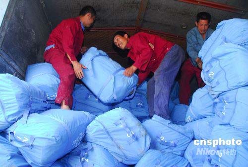 圖:安徽1.5萬頂帳篷緊急運往四川災(zāi)區(qū)