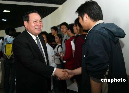 清華大學(xué)學(xué)子為地震災(zāi)區(qū)獻(xiàn)血 校長(zhǎng)顧秉林慰問(wèn)同學(xué)(2)
