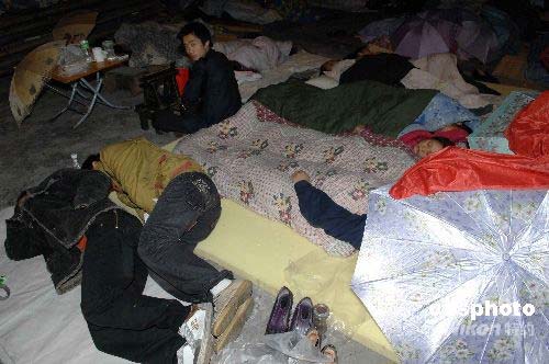 圖:成都地震災(zāi)區(qū)民眾露宿街頭立交橋下(3)