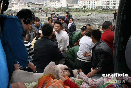 汶川首批40名重傷員被直升機(jī)運(yùn)往成都救治