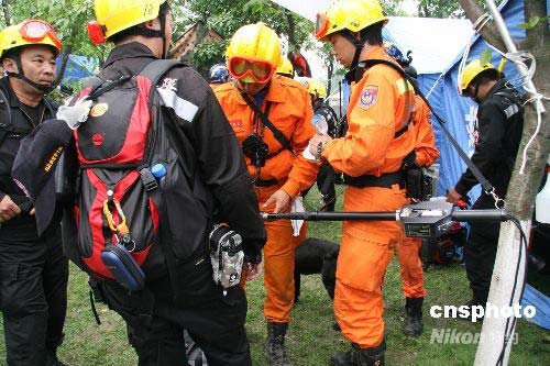 臺(tái)灣地震救援隊(duì)進(jìn)入四川重災(zāi)區(qū)救援 來(lái)自臺(tái)灣的紅十字救援隊(duì),十七日進(jìn)入四川綿竹市漢旺鎮(zhèn)展開(kāi)搜救工作。中新社發(fā) 齊彬 攝