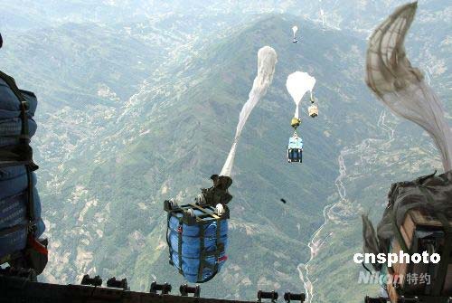 圖:中國(guó)空軍向四川災(zāi)區(qū)空投帳篷成功(2)
