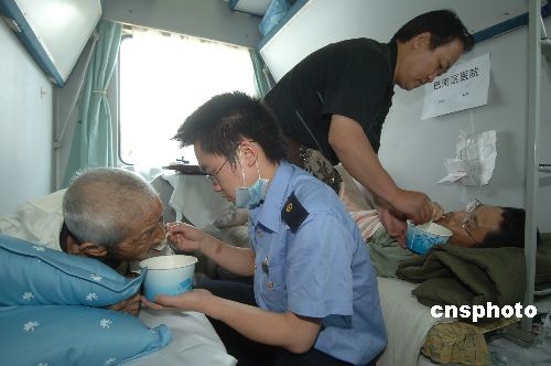 組圖:地震災(zāi)區(qū)首趟運(yùn)送傷員專(zhuān)列順利抵達(dá)重慶(6)