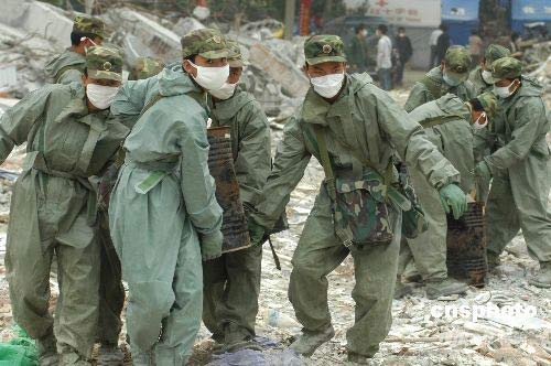 防化兵在搬運消毒干粉。中新社發(fā) 成和平 攝