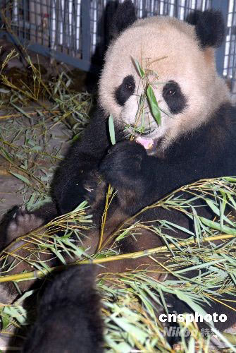 5月24日,來自四川臥龍的8只大熊貓平安抵達(dá)北京動物園,開始新的生活。此次進(jìn)京的8只奧運(yùn)大熊貓,是今年3月21日啟動的“2008四川臥龍大熊貓奧運(yùn)北京行”投票評選活動中,由廣大網(wǎng)民從16只大熊貓里選出來的。這8只熊貓,雌雄各半,現(xiàn)在的年齡都在1歲9個(gè)月之間,屬亞成體,正是最活潑可愛的年華。 中新社發(fā) 羅小韻 攝
