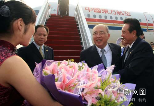 中國國民黨主席吳伯雄率團抵達南京 陳云林接機