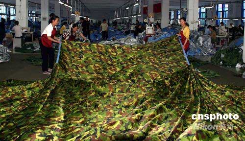 5月28日,揚(yáng)州舉行萬(wàn)頂帳篷發(fā)往災(zāi)區(qū)的發(fā)車儀式。圖為中國(guó)最大的戶外帳篷生產(chǎn)企業(yè)江蘇阿珂姆野營(yíng)用品公司生產(chǎn)車間,目前正承擔(dān)著民政部下達(dá)的12萬(wàn)頂救災(zāi)帳篷生產(chǎn)任務(wù)。連日來(lái),3500名員工在全力以赴加班加點(diǎn)生產(chǎn)帳篷,日產(chǎn)帳篷可達(dá)5000頂左右,5月30日后日產(chǎn)量預(yù)計(jì)可達(dá)6000頂以上。6月20日前,完成民政部下達(dá)的救災(zāi)帳篷生產(chǎn)任務(wù)。中新社發(fā) 崔佳明 攝